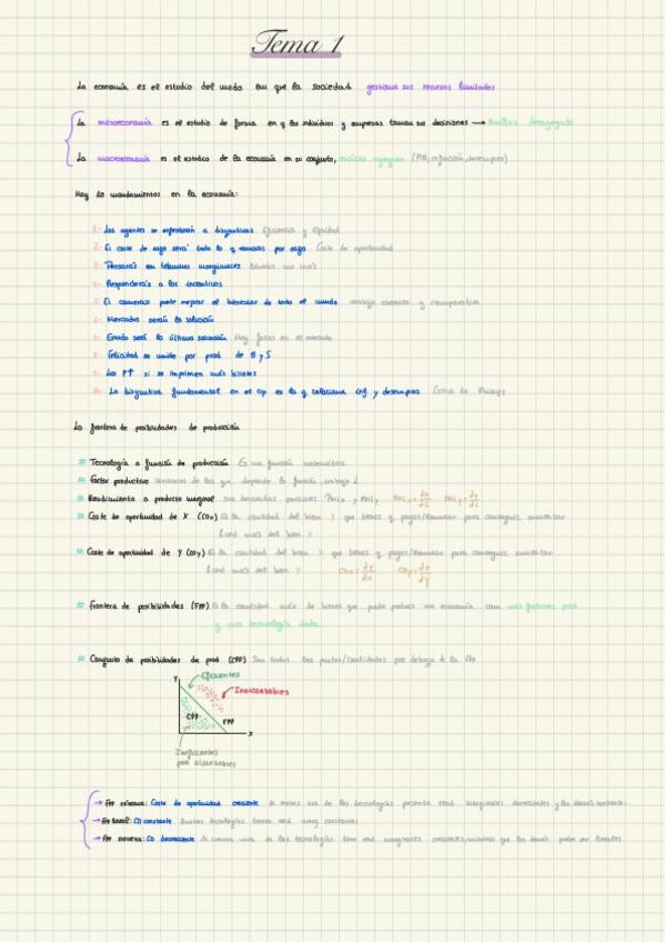 Apuntes de la teoría del tema 1 de la asignatura Introducción a la Economía del grado de Economía.