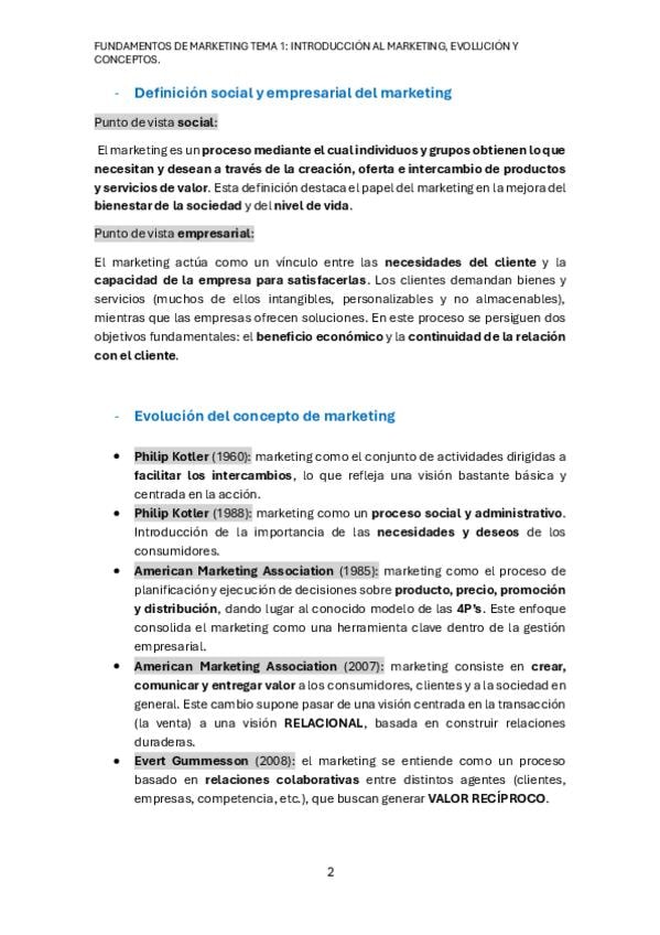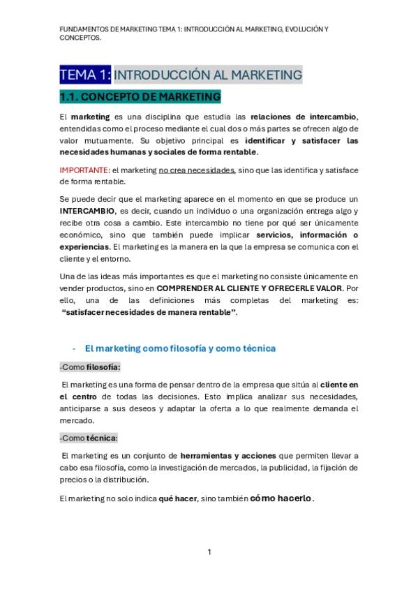 Apuntes del tema 1 de Fundamentos de Marketing: Introducción al Marketing.