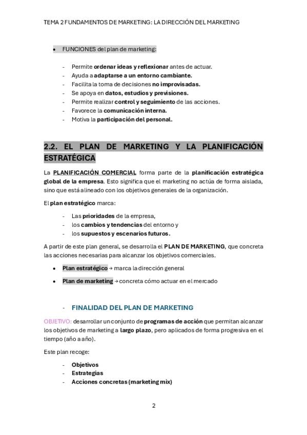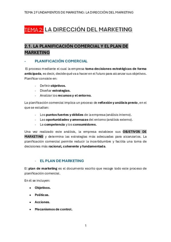 Tema 2 de Fundamentos de Marketing sobre la dirección de marketing.