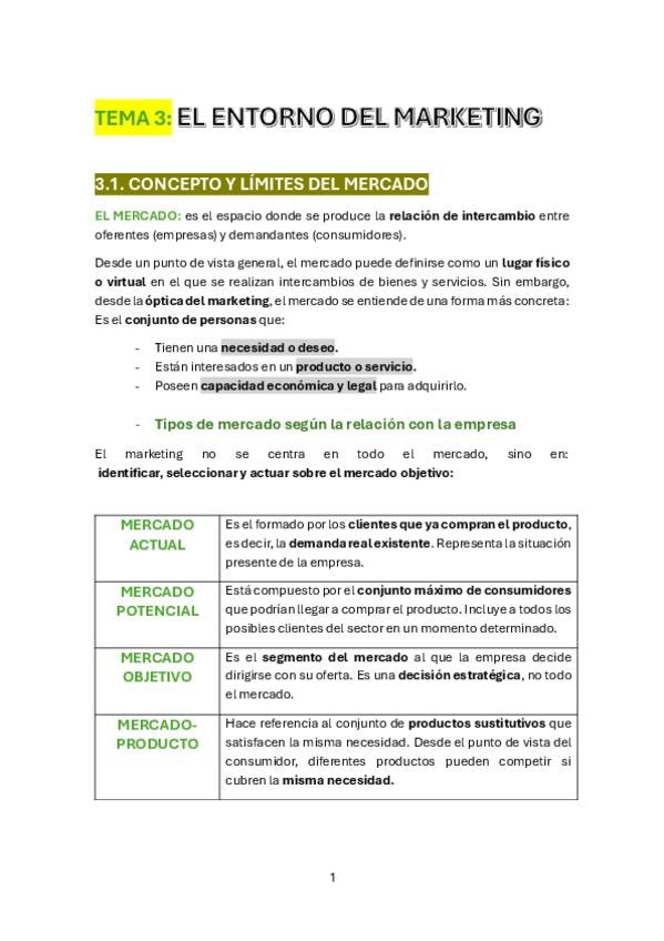 Tema 3 de Fundamentos de Marketing sobre el entorno del marketing.