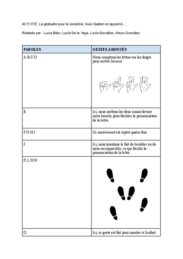 Tabla resumen del proceso de enseñanza, las actividades que se deben realizar y a qué edades
