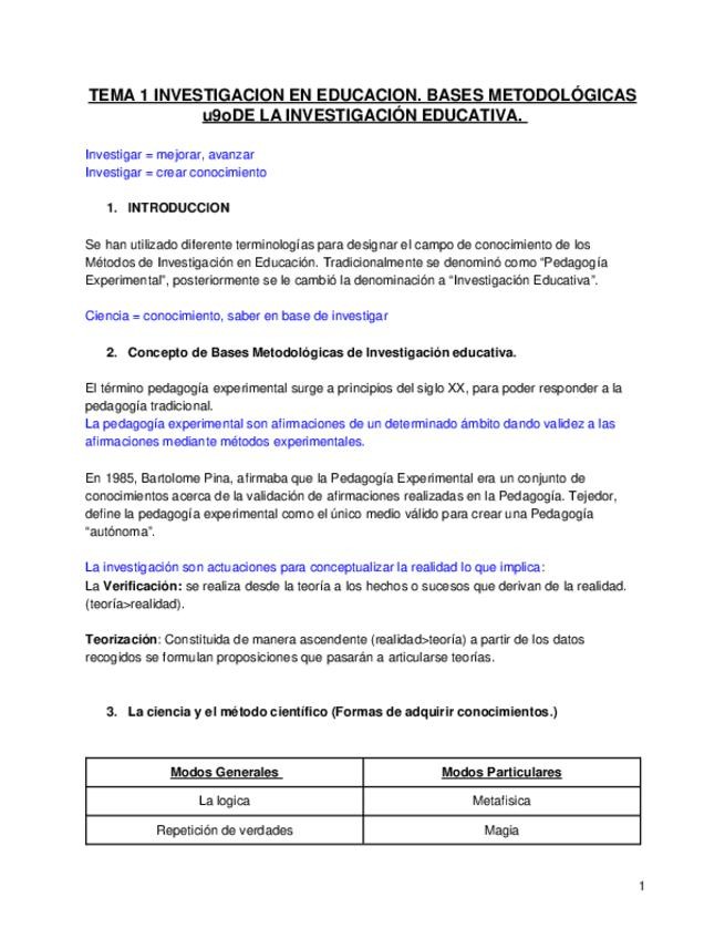 Temario bases metodológicas de la investigación educativa
