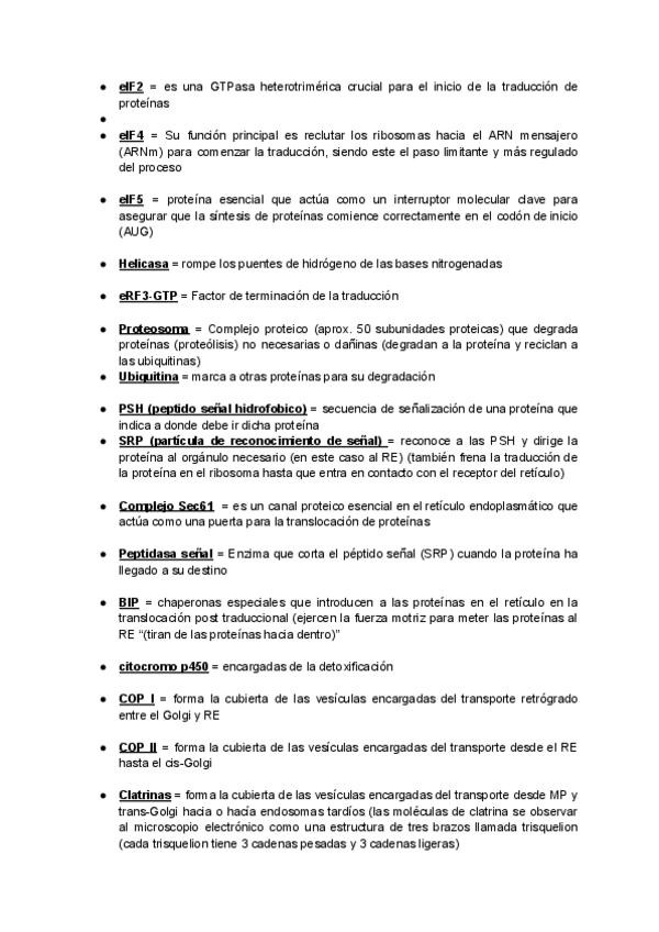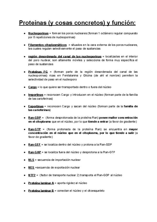 Listado de las proteínas importantes con función (hasta el tema 11)