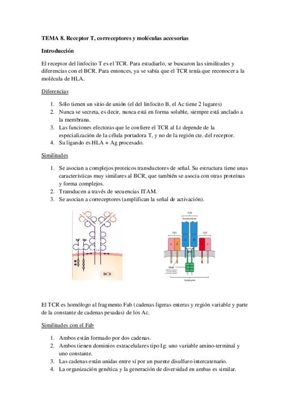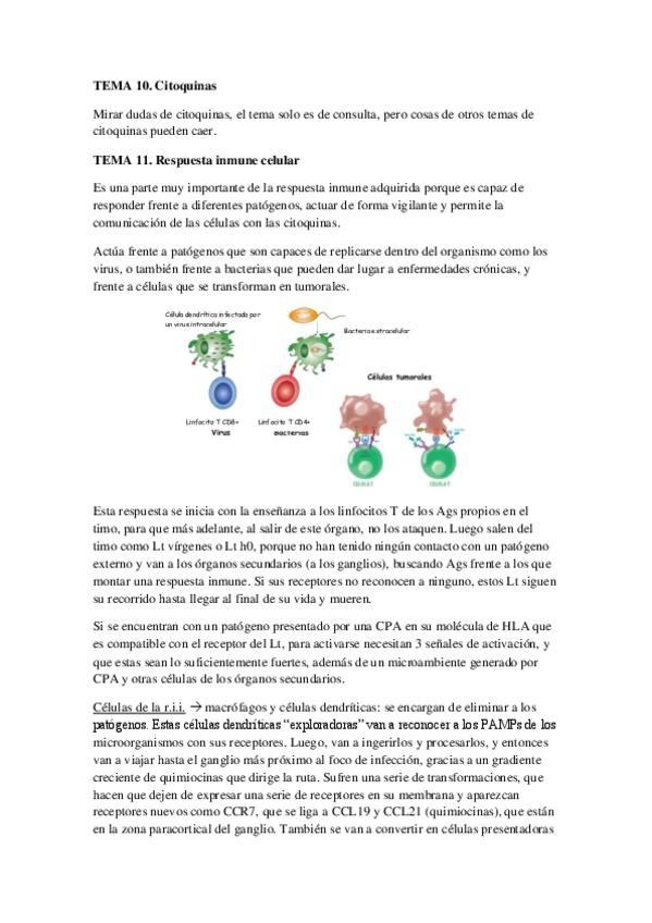 Resúmenes de inmunología del tema 8 al 13 completos. El tema 10, el de citoquinas no está porque no entra en el examen como tal. Ánimo para todo el que lea esto!!! :)