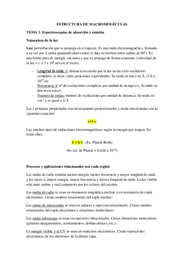He subido mis apuntes de estructura de macromoléculas del tema 1 al 5. Del tema 2 lo que está subrayado es lo que suele preguntar.