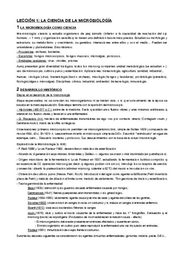 Temario por lecciones microbiologia