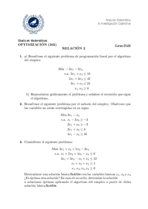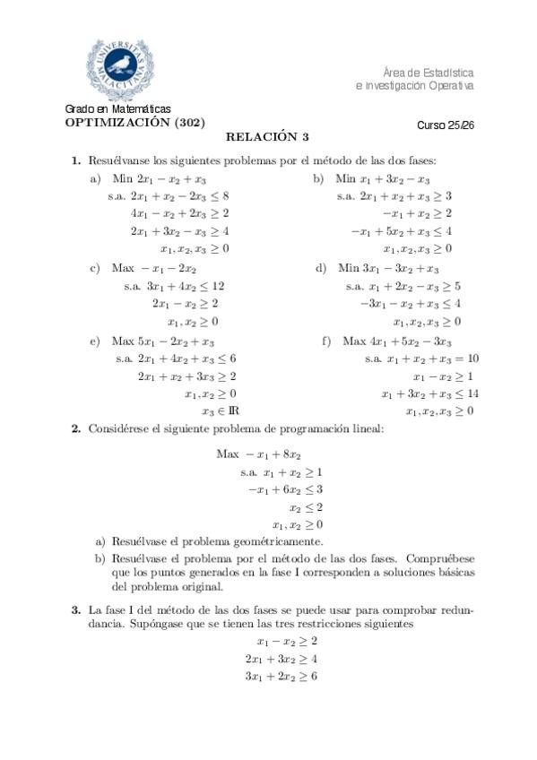 He publicado nuevos ejercicios de 3º Optimización: relacion-3-Tema-3-opti.pdf