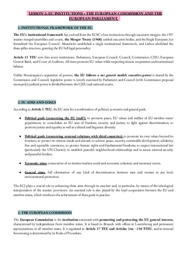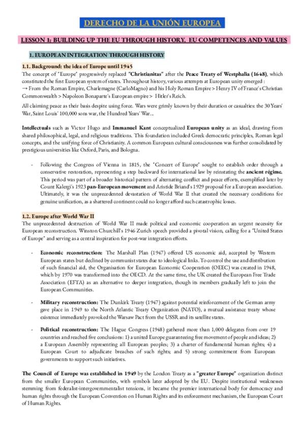 Apuntes de derecho de la unión europea (EN INGLÉS), usando el manual de la profesora y las diapositivas del CV (NO incluye notas de clase, lo siento)