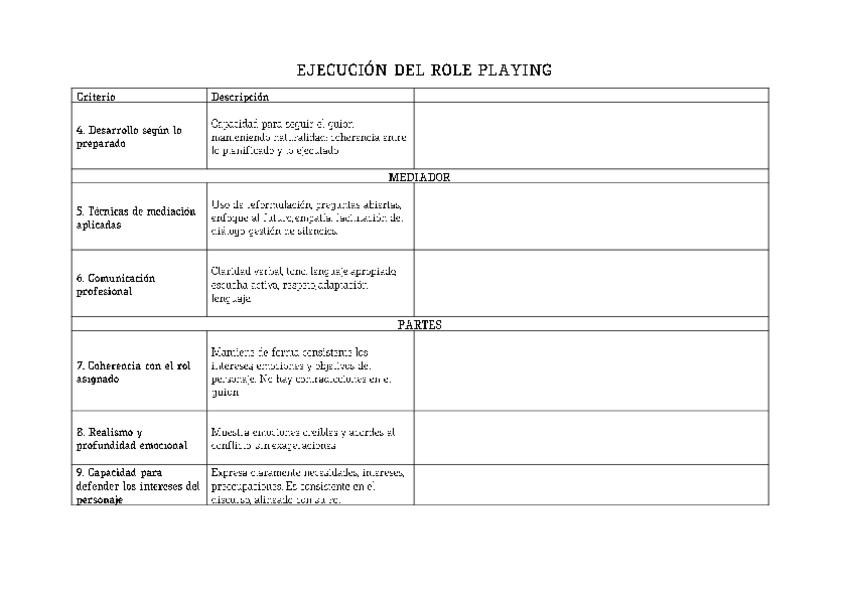 He publicado nuevos apuntes de 1º Resolución y Gestión de Conflictos: la Mediación i: rubricaevaluacionroleplaying.pdf