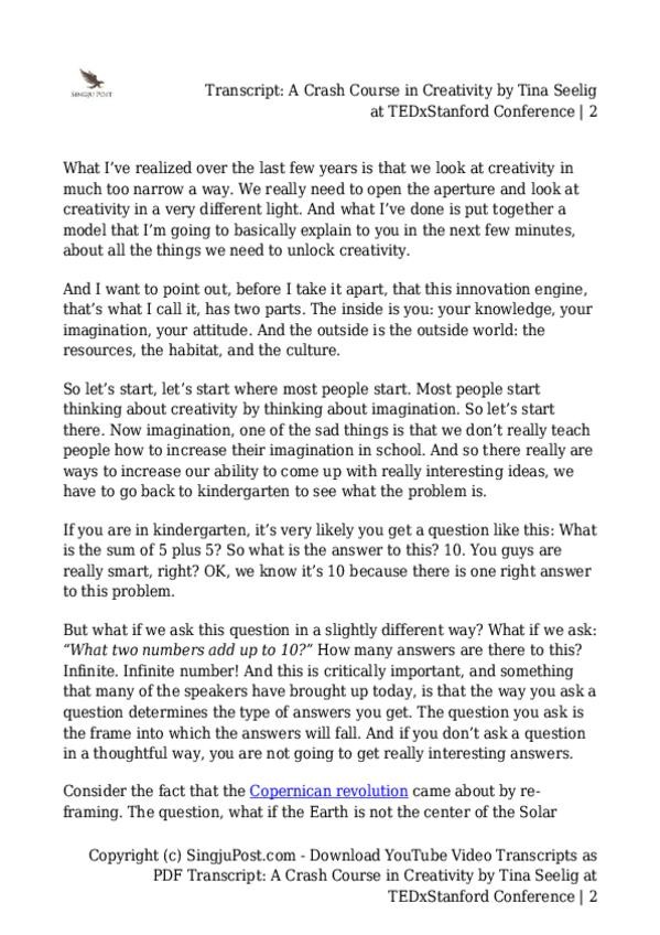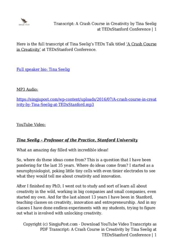 He publicado nuevos apuntes de 1º Resolución y Gestión de Conflictos: la Mediación Ii: Transcript-A-Crash-Course-in-Creativity-by-Tina-Seelig-at-TEDxStanford-Conference.pdf