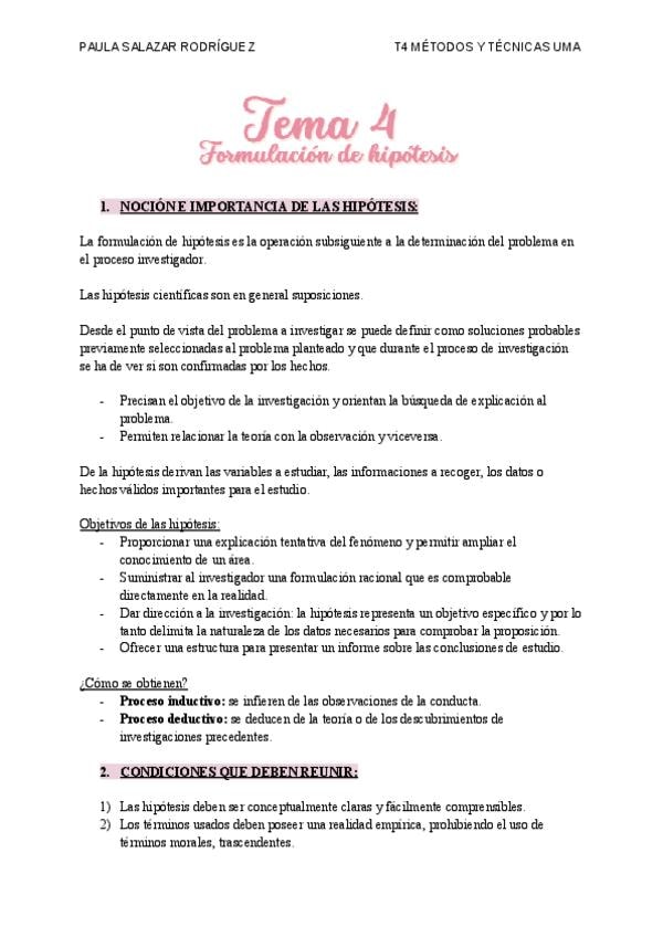 Apuntes/resumen del Tema 4 de Métodos y Técnicas de Investigación Social 25/26 Resumen sacado de los apuntes subidos por la profesora Mercedes Fernandez