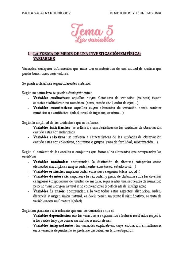 Apuntes/resumen del tema 5 de Métodos y técnicas de investigación social. Resumen sacado de los apuntes subidos por la profesora Mercedes Fernandez