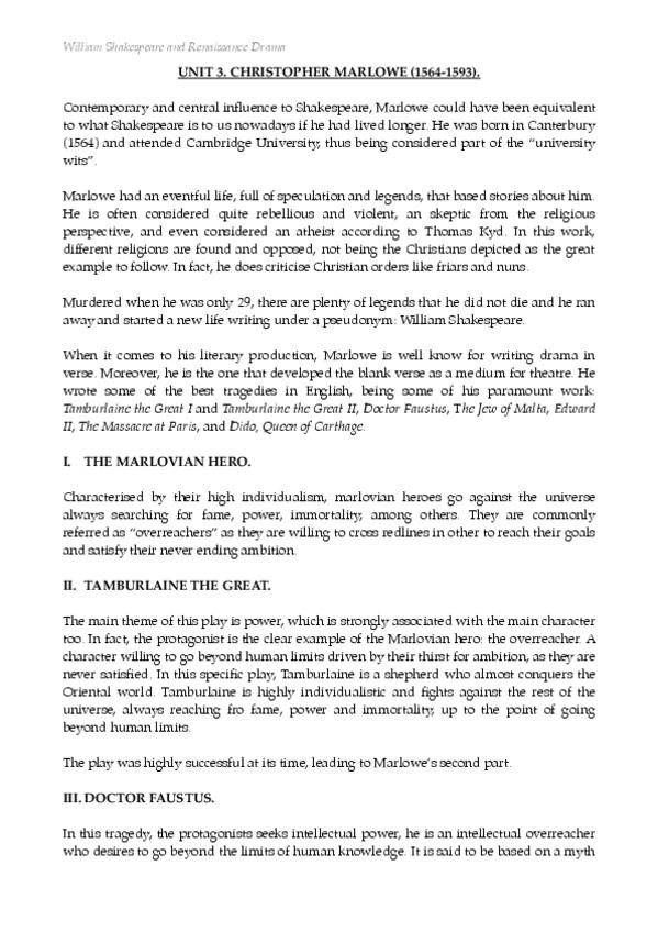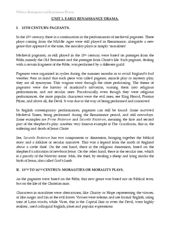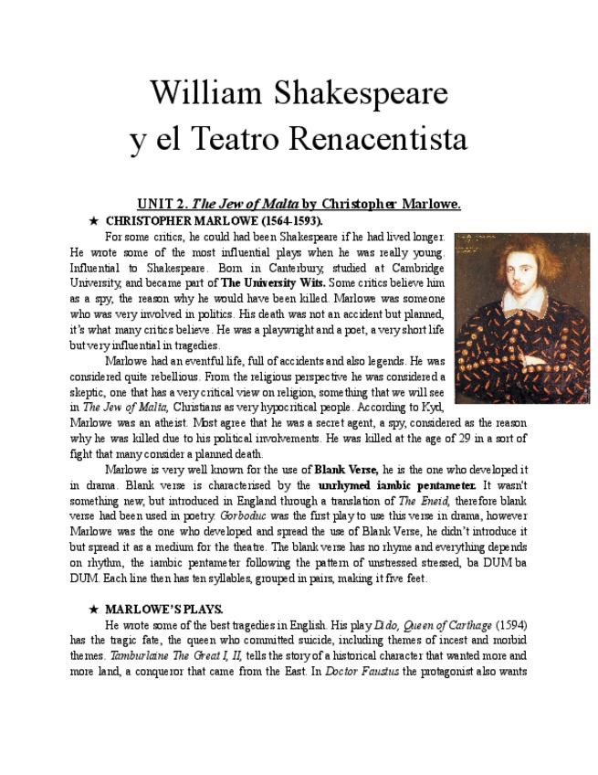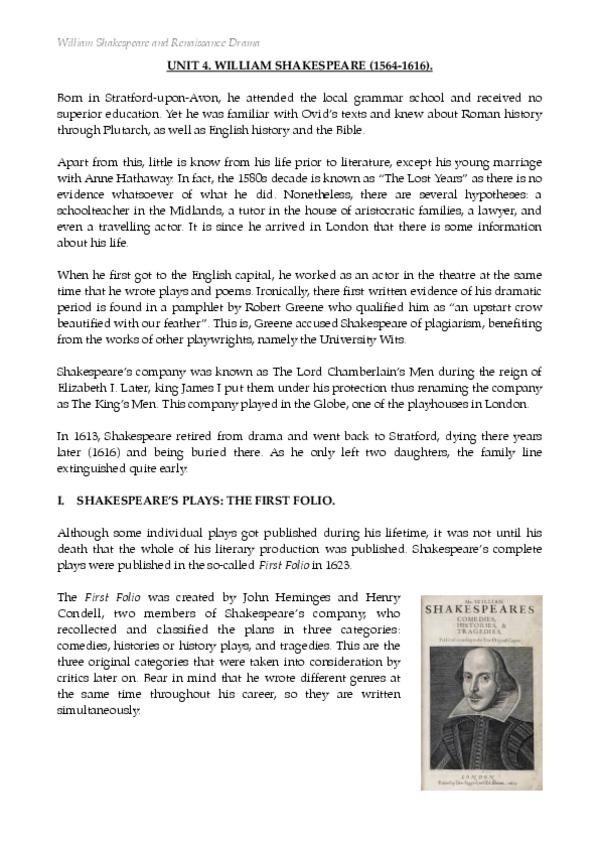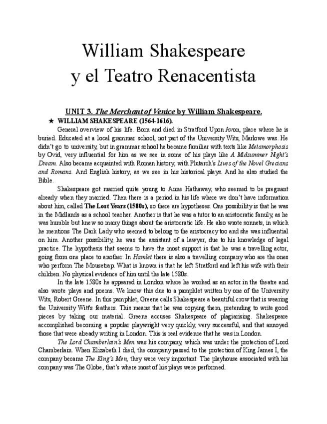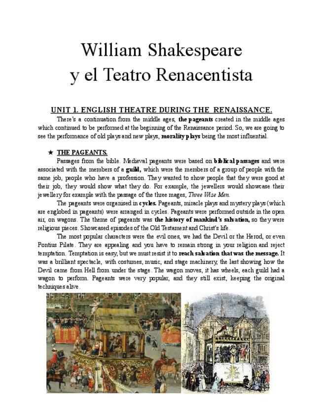 Apuntes Shakespeare y el Teatro Renacentista