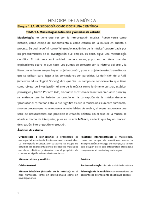 Bloque 1: la musicología como disciplina científica, consideraciones generales, Musicología e Historia del Arte: puntos de encuentro e interdependencias, y la musicología de género y aproximaciones de género en el estudio de la Historia de la Música