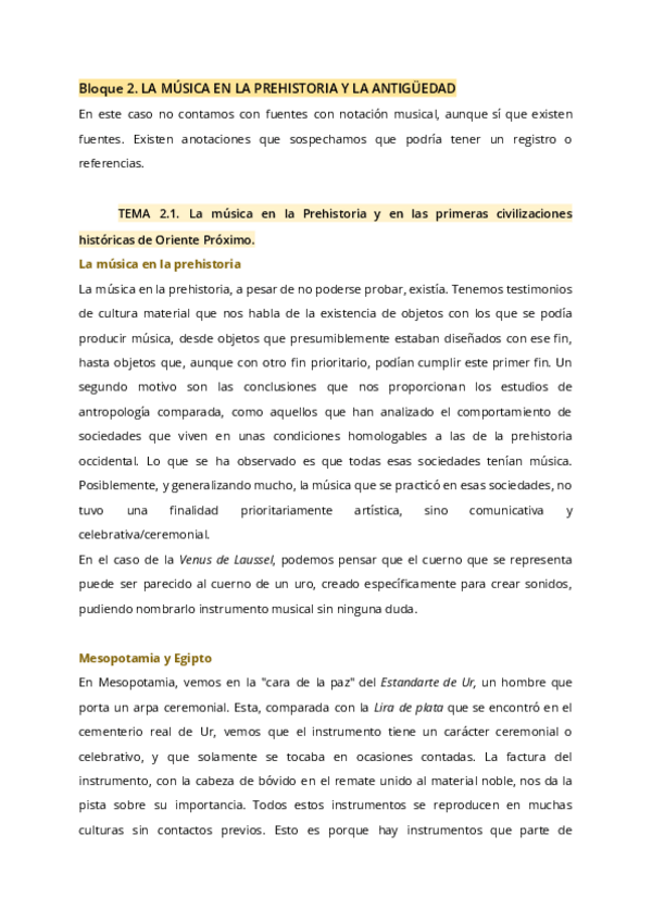 Bloque 2 de Historia de la música, de la Prehistoria a la antigüedad con el contenido de la práctica del cuestionario (EL EPITAFIO DE SEIKILOS)