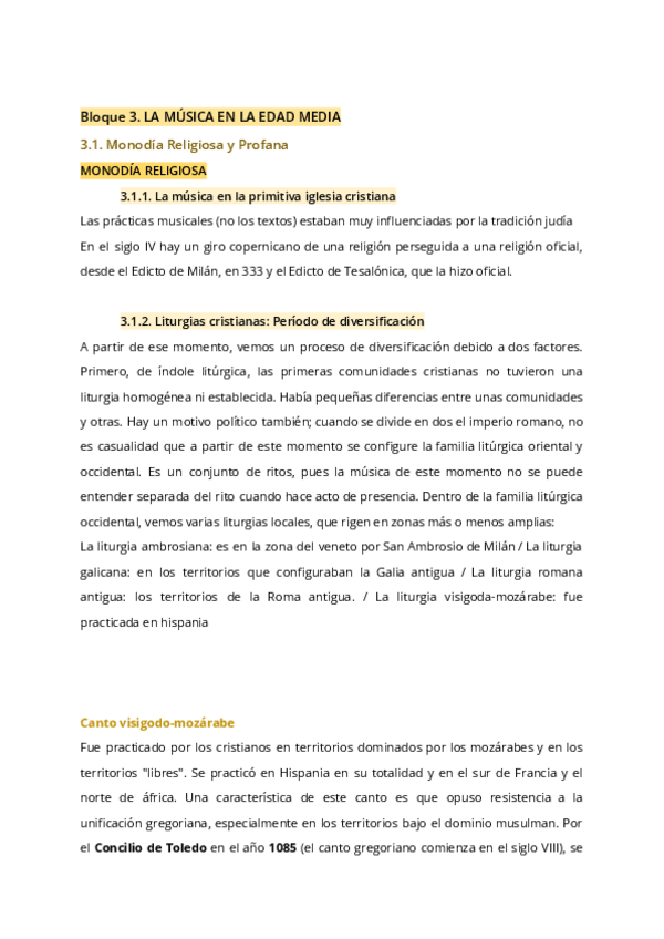 Bloque 3. La música de la Edad Media -> prácticas de las diferentes audiciones del tema, con elementos más destacados de los tests y tema completo.