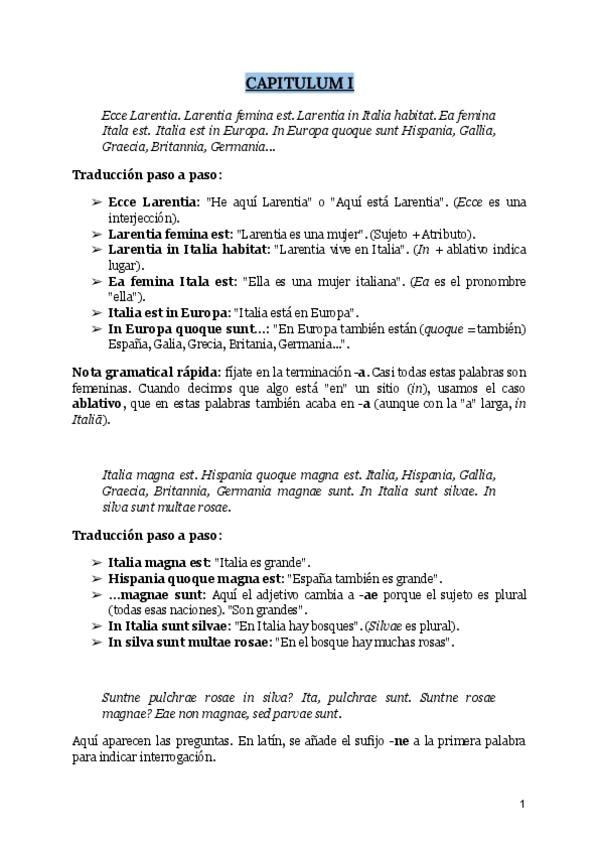 Traducción desglosada paso a paso junto a algunos ejercicios del primer capítulo de Via Latina :)