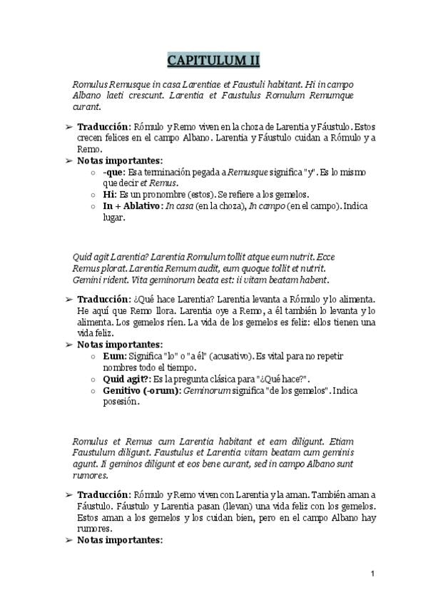 Traducción desglosada del segundo capítulo de Via Latina con cuadros para recordar la gramática, algunos ejercicios de repaso y una lista de vocabulario al final :)