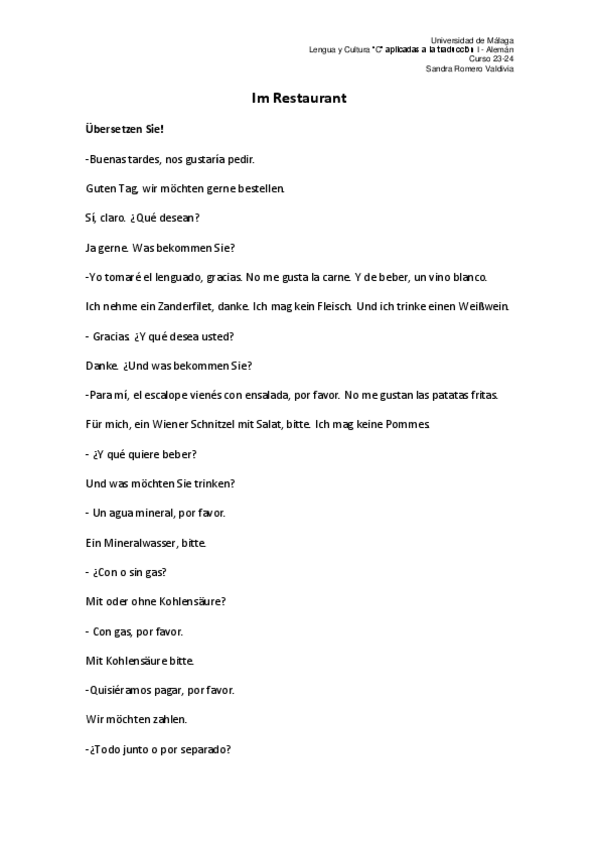 He publicado nuevos ejercicios de 1º Lengua y Cultura "C" Aplicadas a la Traducción e Interpretación (I): I.-Traduccion-Oraciones-Soluciones-Ubersetzen-Gesprach-im-Restaurant-Lektion-2.pdf