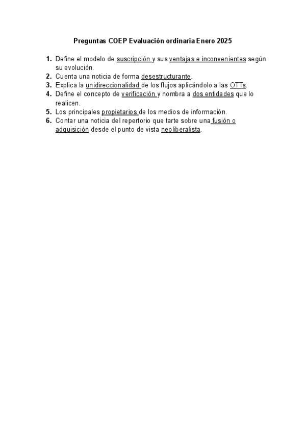 Preguntas de Creación y Organización de la Empresa Periodística de la evalución ordanaria de enero de 2025