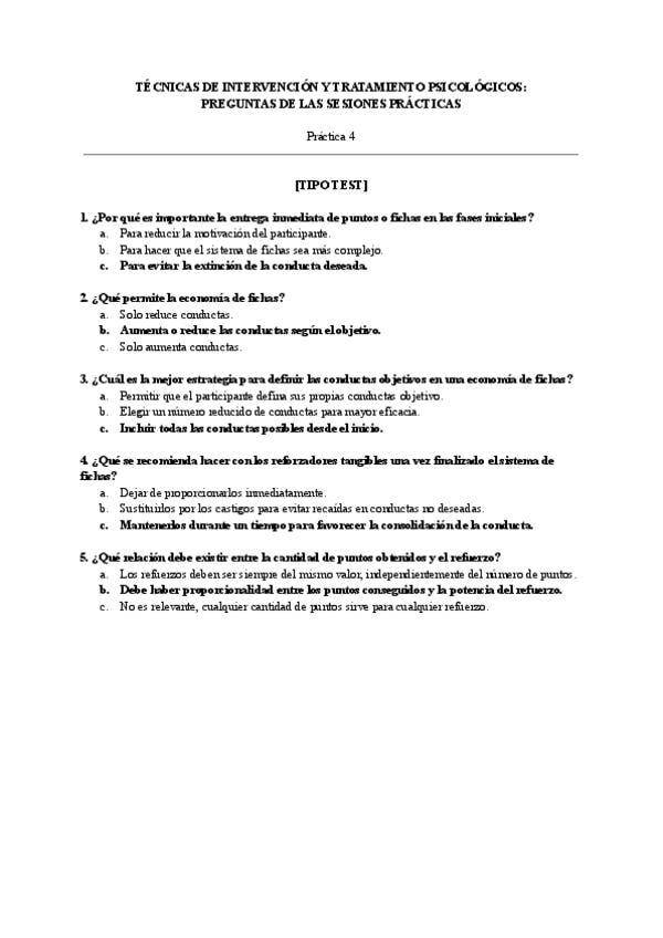 Preguntas Teoría - Técnicas de Intervención y Tratamiento