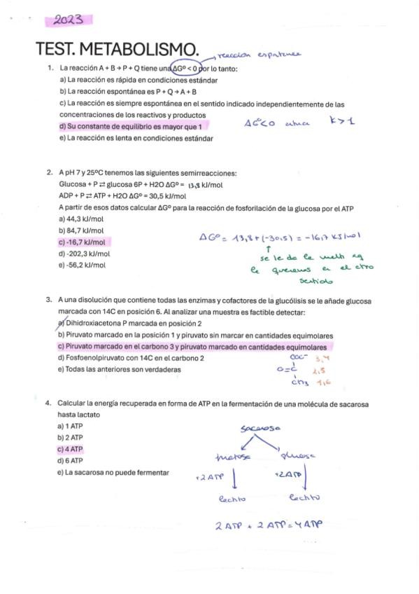 He publicado nuevos apuntes de 2º Metabolismo y su Regulación: modelo de examen