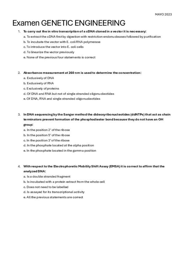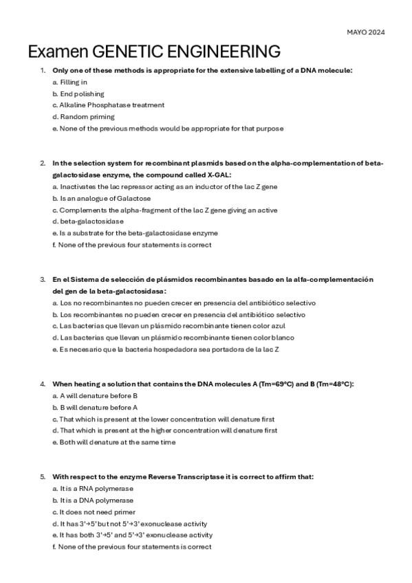 He publicado nuevos examenes de 2º Ingeniería genética - (taught in English - Genetic engineering): EXÁMENES