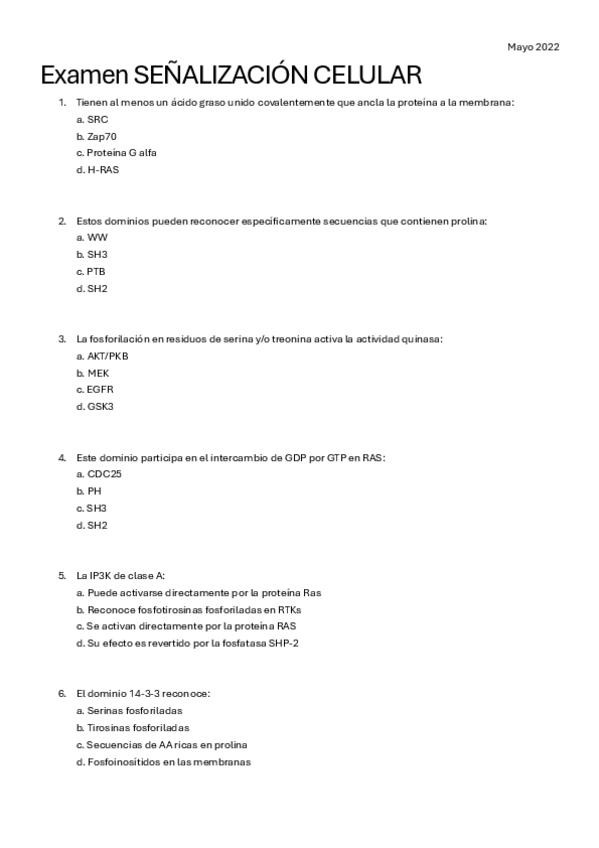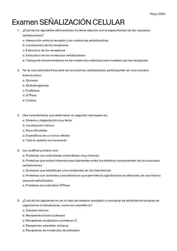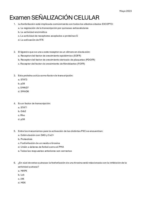 He publicado nuevos examenes de 2º Señalización Celular: EXÁMENES