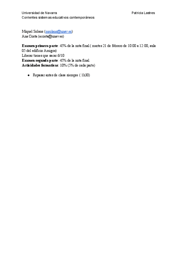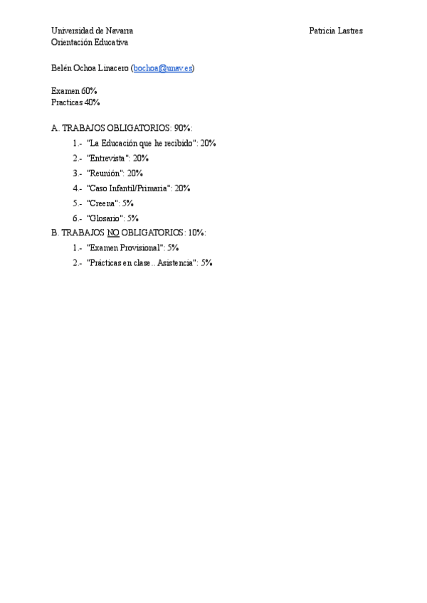 Asignaturas de Doble Grado en Pedagogía y Educación Infantil (UNAV)