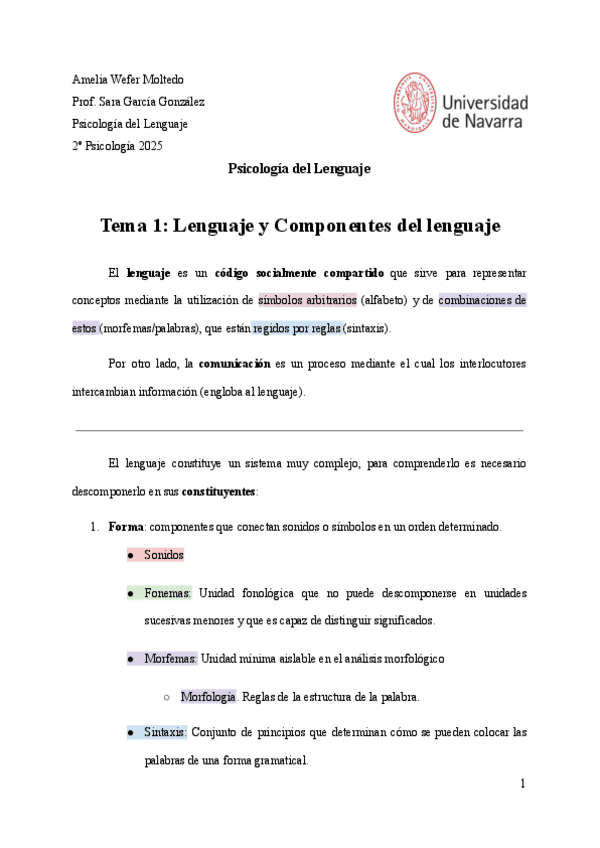 Apuntes completos de psicología del lenguaje con esquemas y otros recursos gráficos. También con esquemas para completar en clase. MH