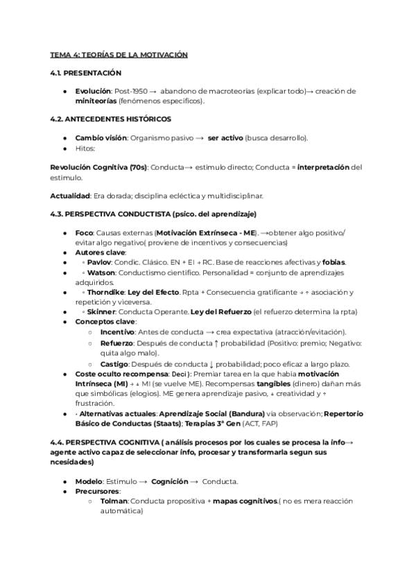 Apuntes del tema de teorías de la motivación súper completo