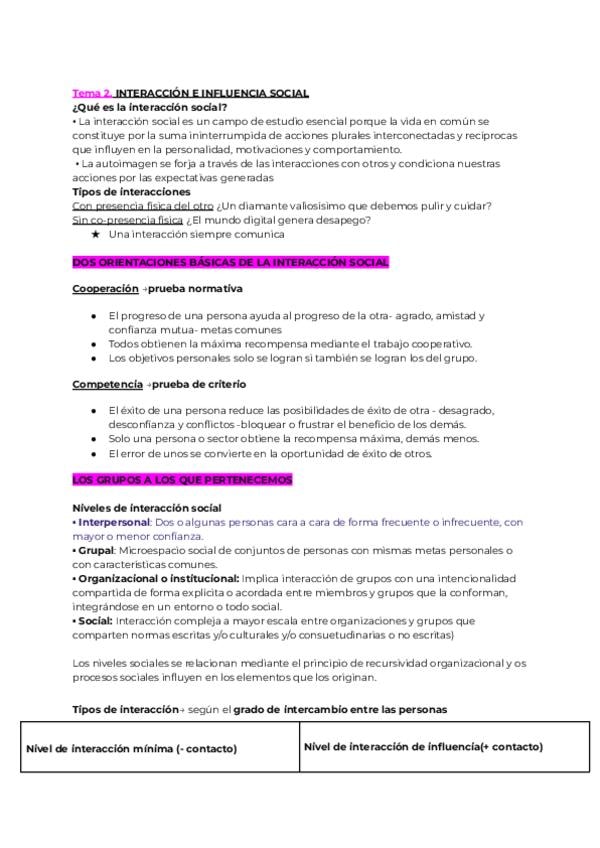 Apuntes super completos del 2º tema de psico. social, interacción e influencia social (2026) presentaciones+ manual+ aspectos de clase