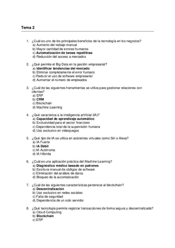 Asignatura: Aplicaciones Informáticas para la Gestión Empresarial Contenido: Preguntas tipo test para estudiar el Tema 2