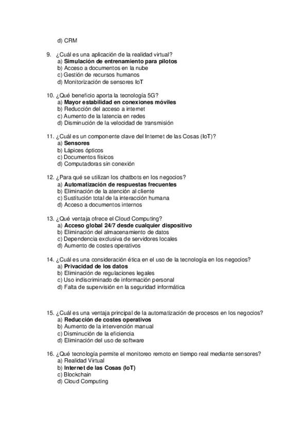 Asignatura: Aplicaciones Informáticas para la Gestión Empresarial Contenido: Preguntas tipo test para estudiar el Tema 9