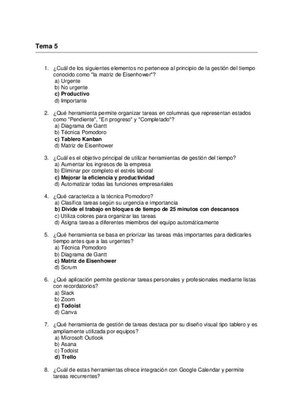 Asignatura: Aplicaciones Informáticas para la Gestión Empresarial Contenido: Preguntas tipo test para estudiar el Tema 5