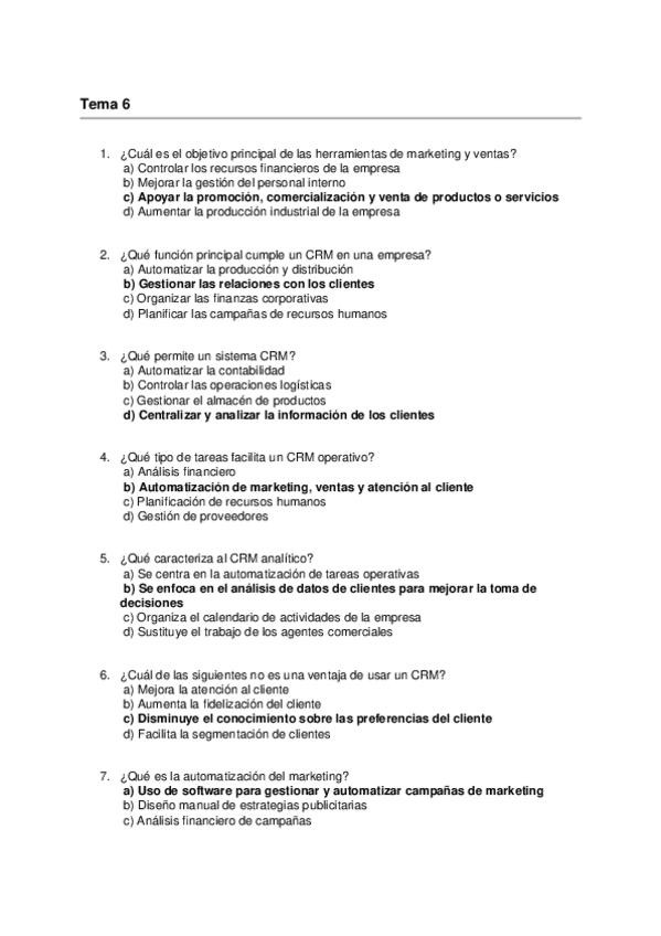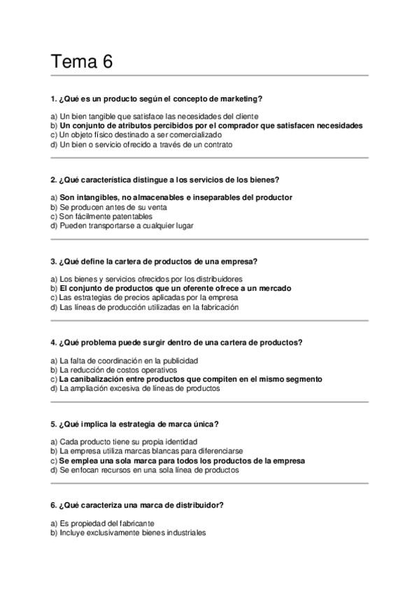 Asignatura: Marketing Estratégico Contenido: Preguntas tipo test para estudiar el Tema 6