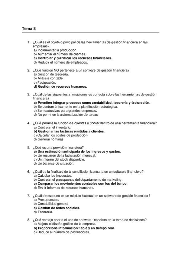 Asignatura: Aplicaciones Informáticas para la Gestión Empresarial Contenido: Preguntas tipo test para estudiar el Tema 8