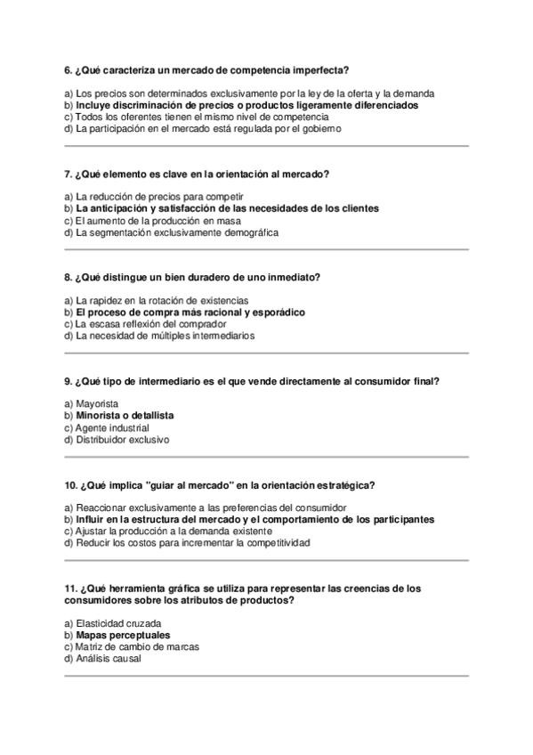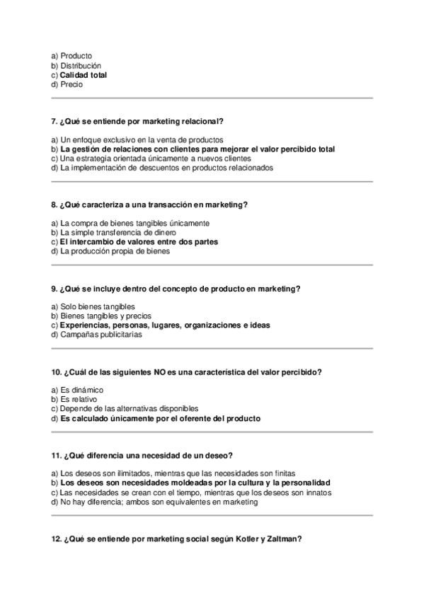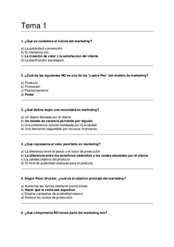 Asignatura: Marketing Estratégico Contenido: Preguntas tipo test para estudiar el Tema 1