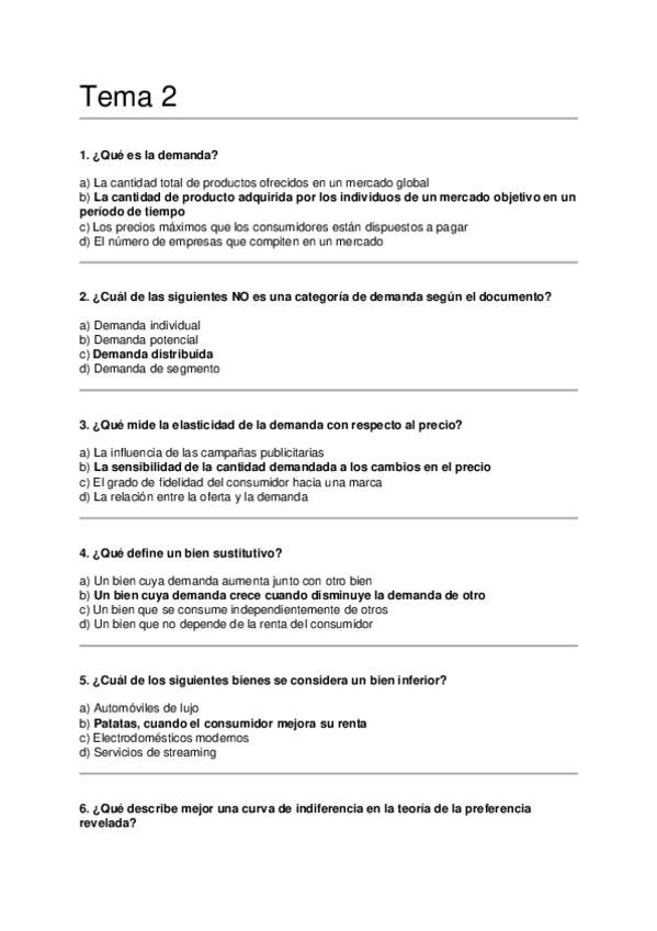 Asignatura: Introducción al Marketing Contenido: Preguntas tipo test para estudiar el Tema 2