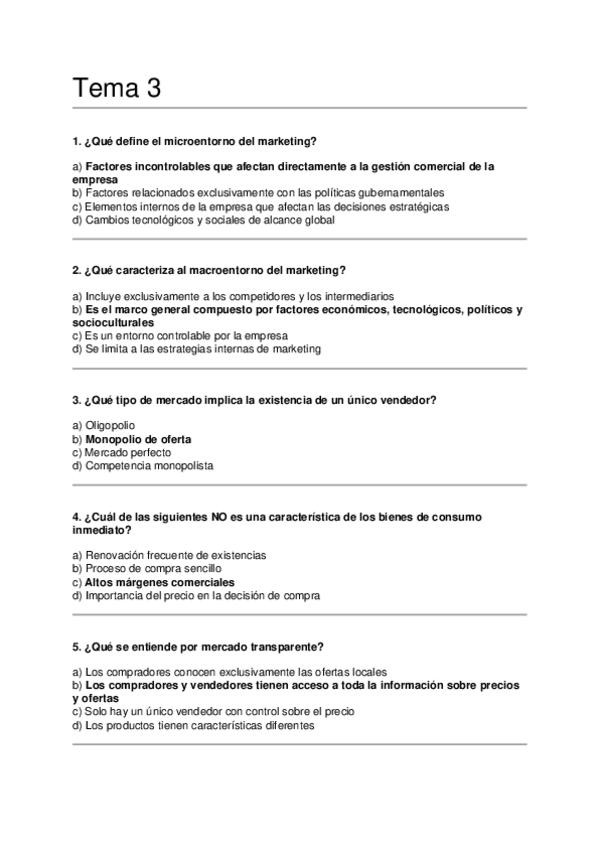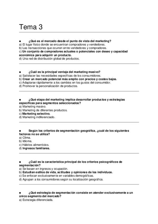 Asignatura: Marketing Estratégico Contenido: Preguntas tipo test para estudiar el Tema 3
