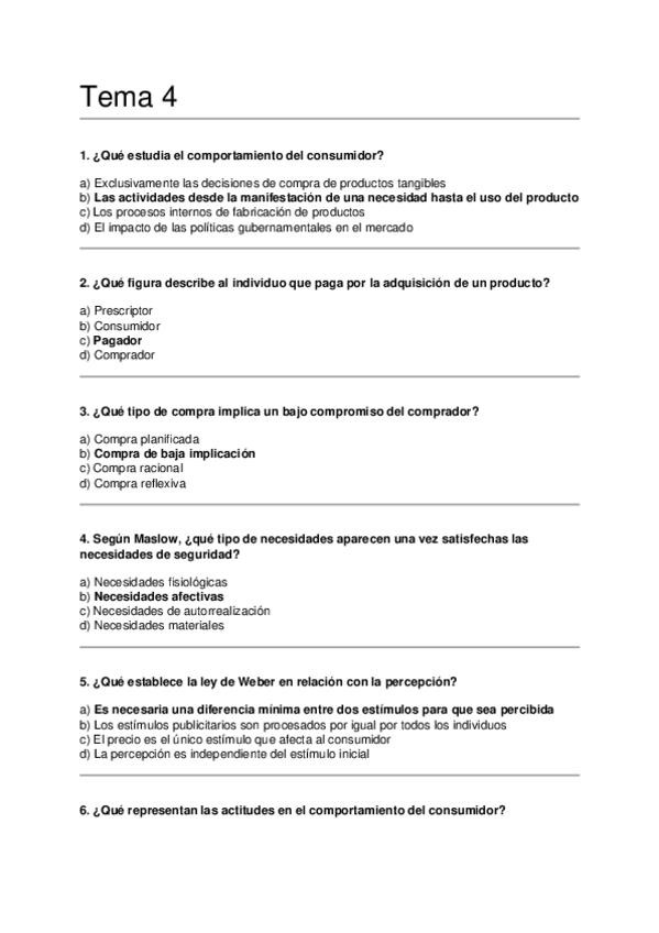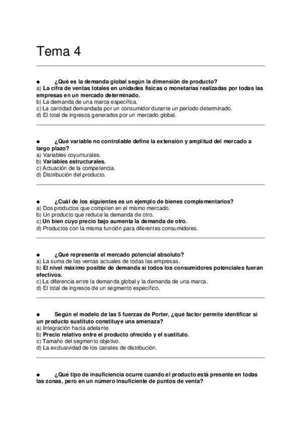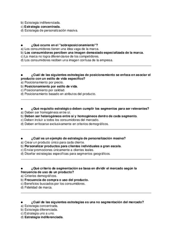Asignatura: Marketing Estratégico Contenido: Preguntas tipo test para estudiar el Tema 4