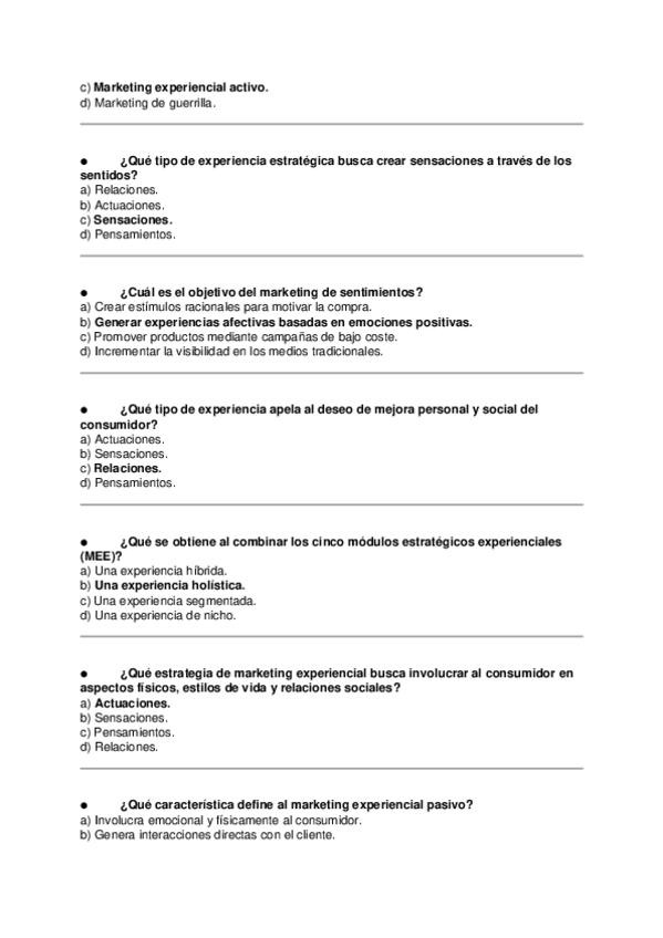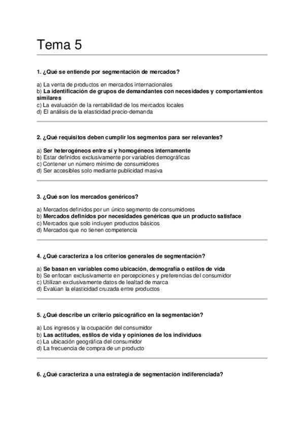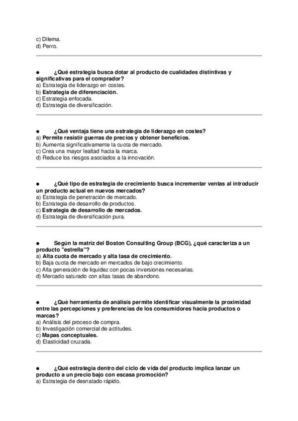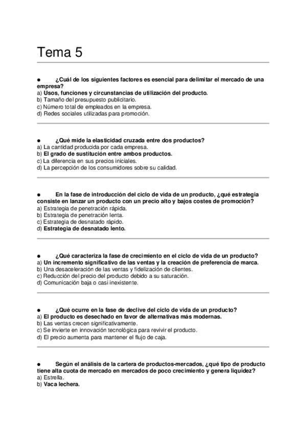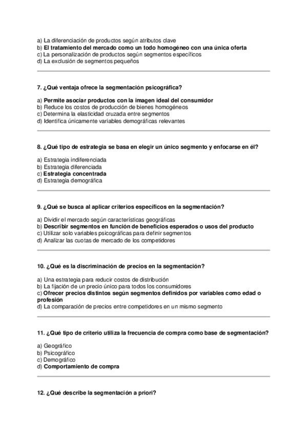 Asignatura: Marketing Estratégico Contenido: Preguntas tipo test para estudiar el Tema 5