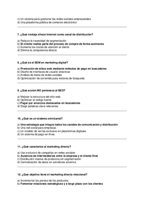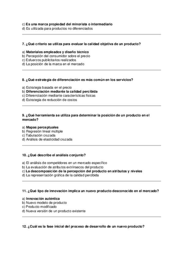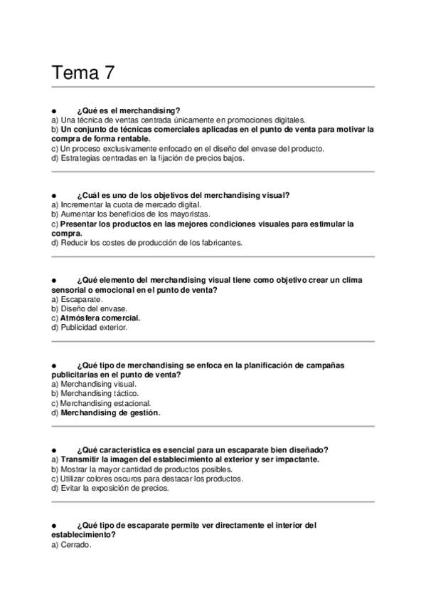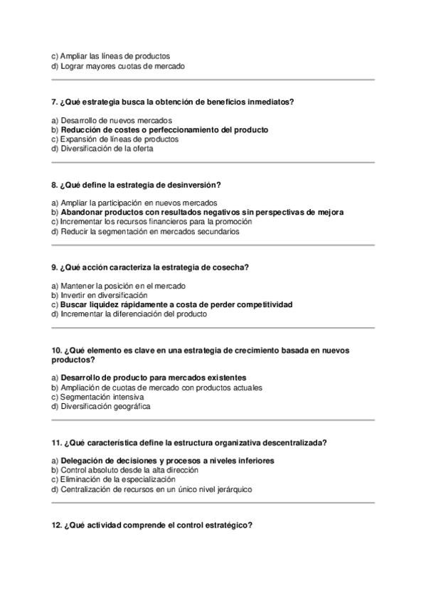 Asignatura: Marketing Estratégico Contenido: Preguntas tipo test para estudiar el Tema 7