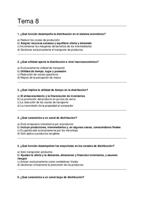Asignatura: Introducción al Marketing Contenido: Preguntas tipo test para estudiar el Tema 8