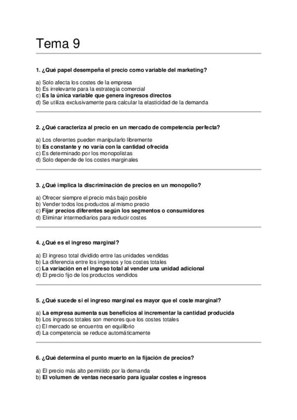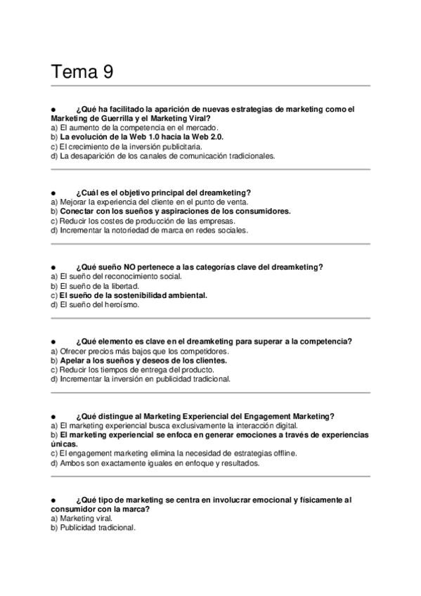 Asignatura: Marketing Estratégico Contenido: Preguntas tipo test para estudiar el Tema 9