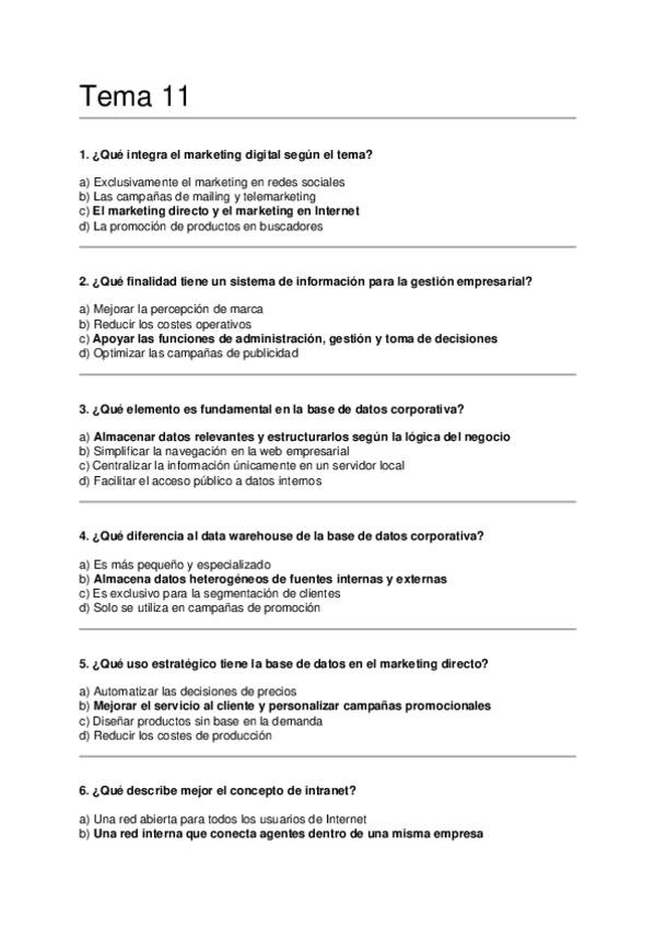 Asignatura: Marketing Estratégico Contenido: Preguntas tipo test para estudiar el Tema 11
