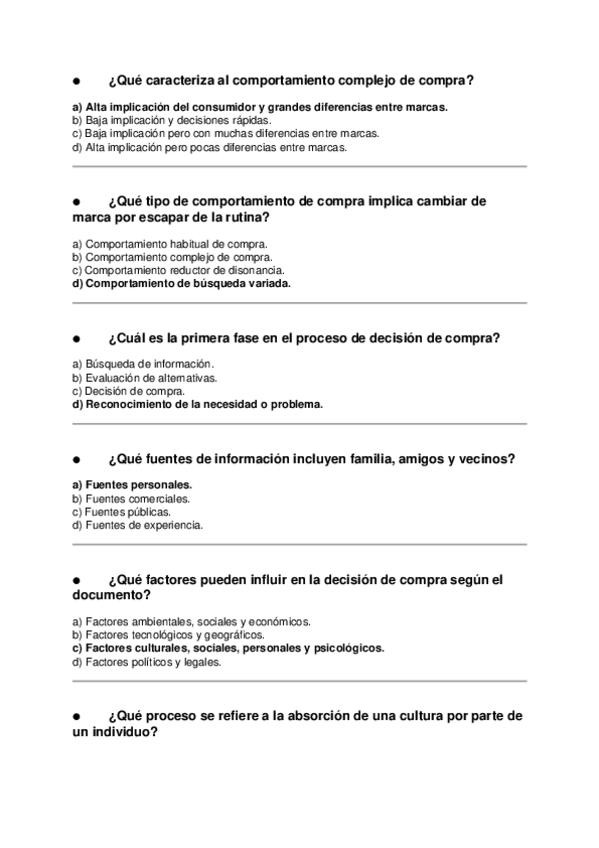 Asignatura: Marketing Estratégico Contenido: Preguntas tipo test para estudiar el Tema 2