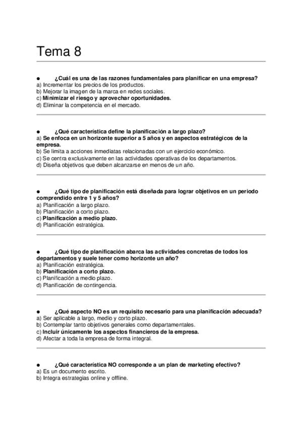 Asignatura: Marketing Estratégico Contenido: Preguntas tipo test para estudiar el Tema 8