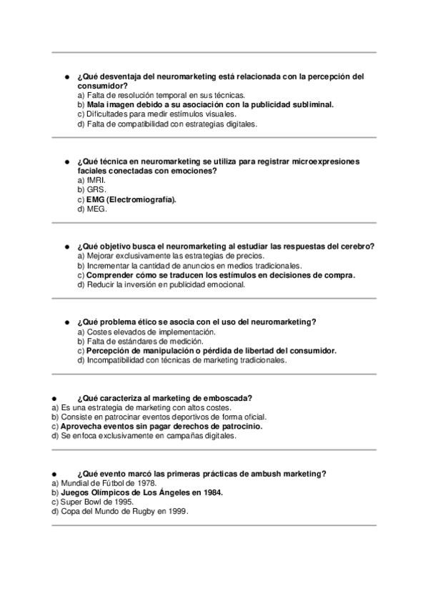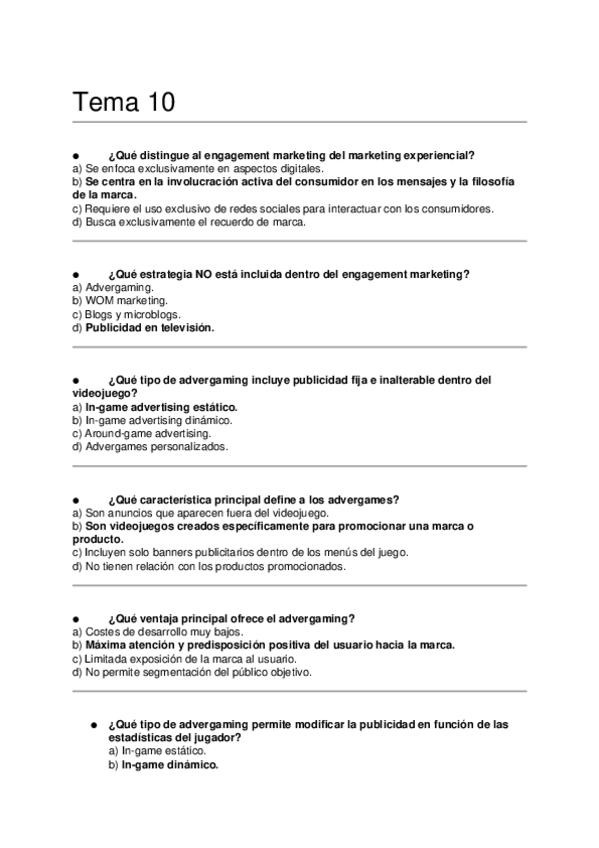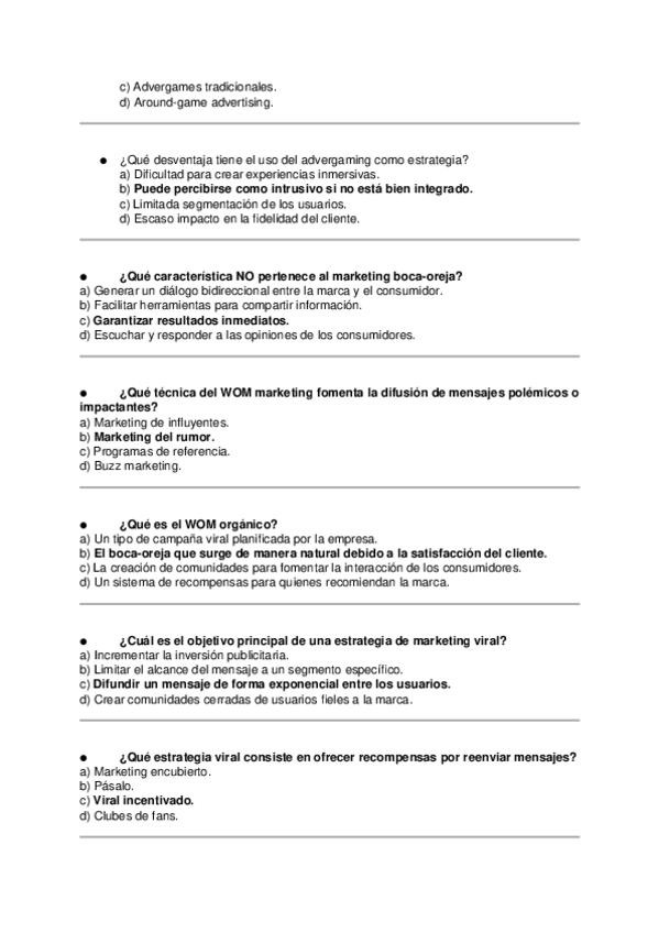 Asignatura: Marketing Estratégico Contenido: Preguntas tipo test para estudiar el Tema 10