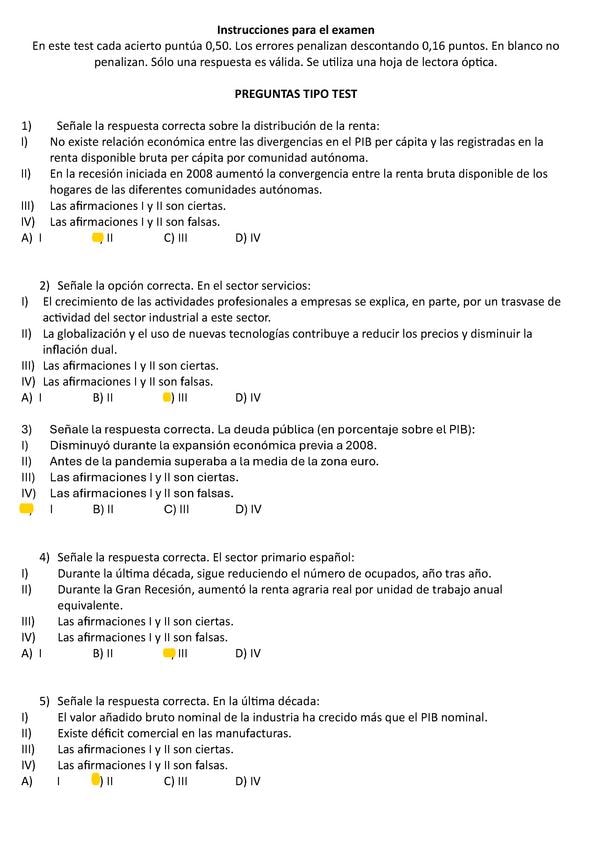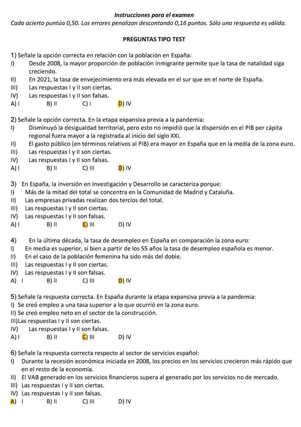 EXAMEN CORREGIDO DE LA ASIGNATURA ESTRUCTURA ECONÓMICA Y FINANCIERA DE ESPAÑA MODELO C DE LA UNED